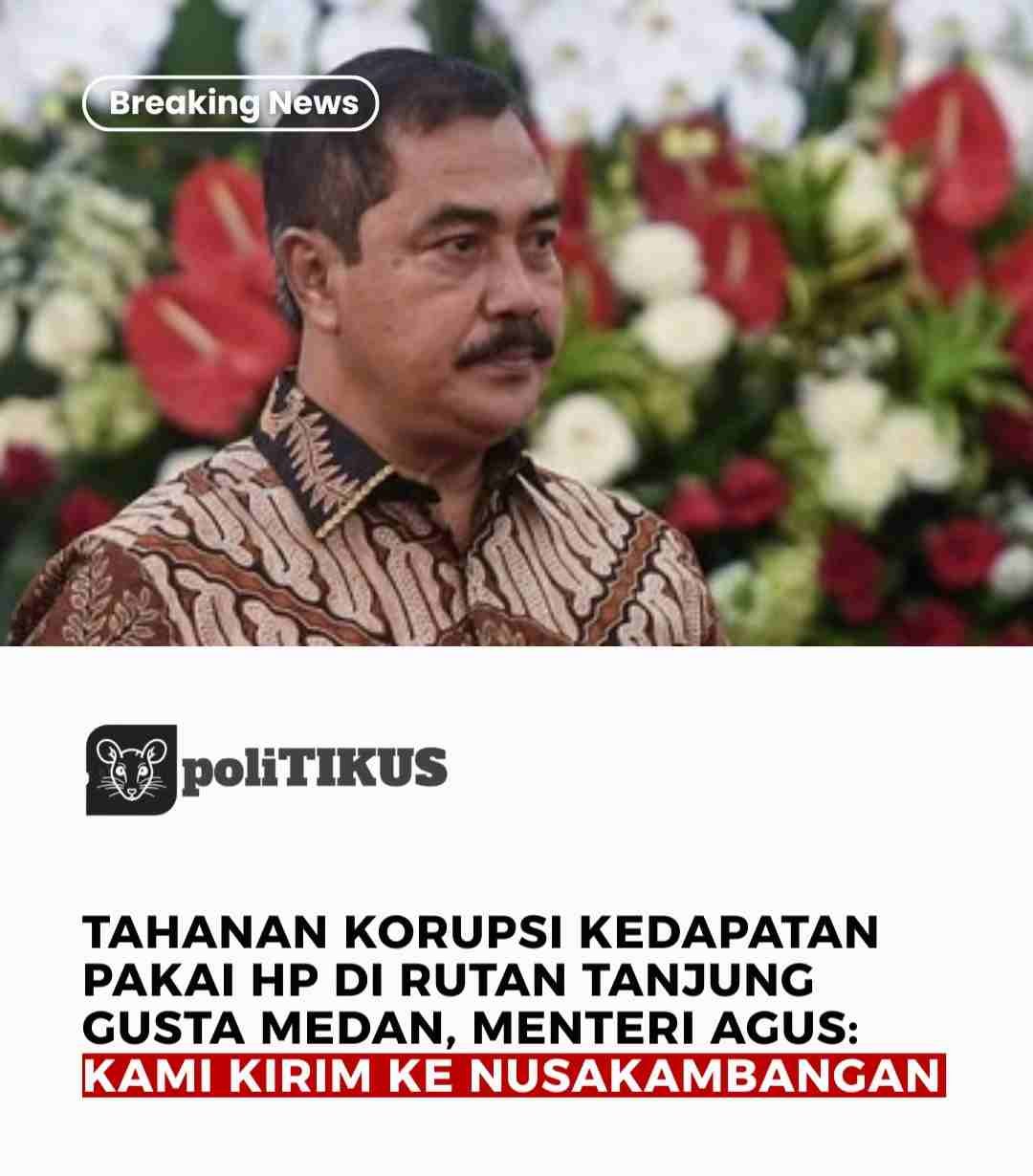 Medan – Menteri Imigrasi dan Pemasyarakatan (Imipas) Agus Andrianto mengambil tindakan tegas menyikapi informasi mengenai seorang tahanan kasus korupsi berinisial IS yang kedapatan menggunakan telepon genggam di Rutan Tanjung Gusta, Medan, Sumatera Utara.